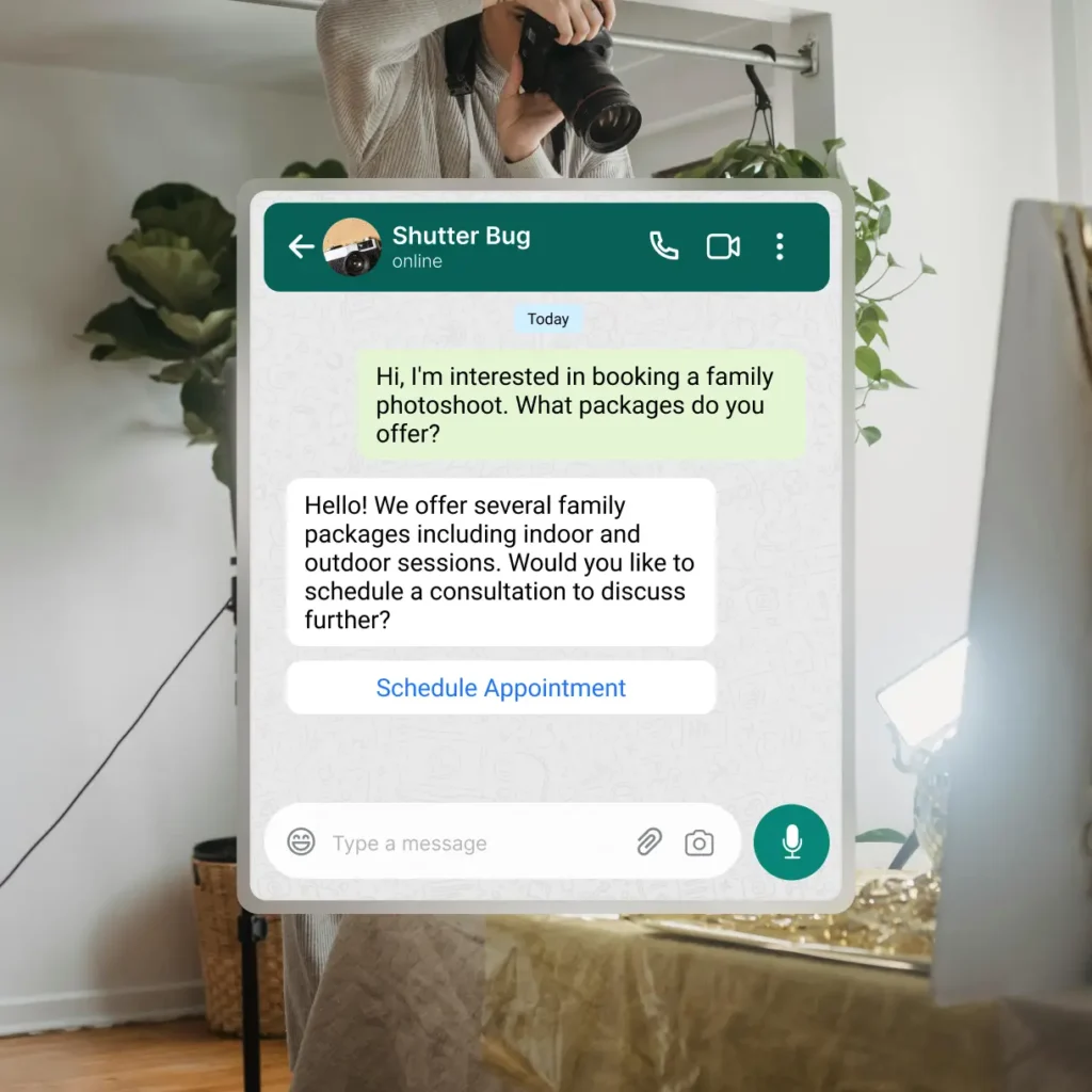 Capture leads from Meta ads, automate appointment bookings, share product info instantly with Meta Catalogs and more.