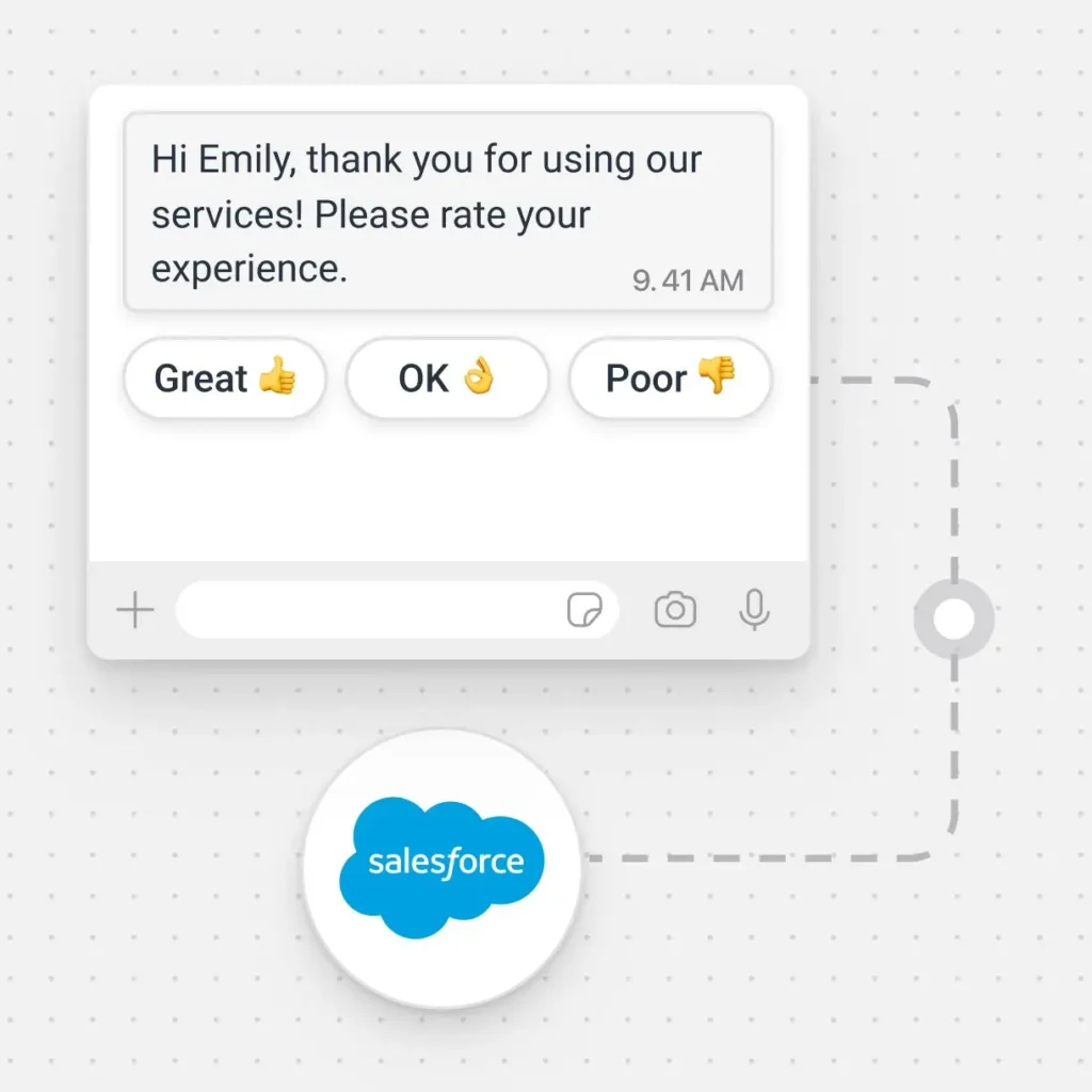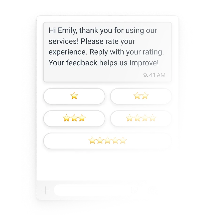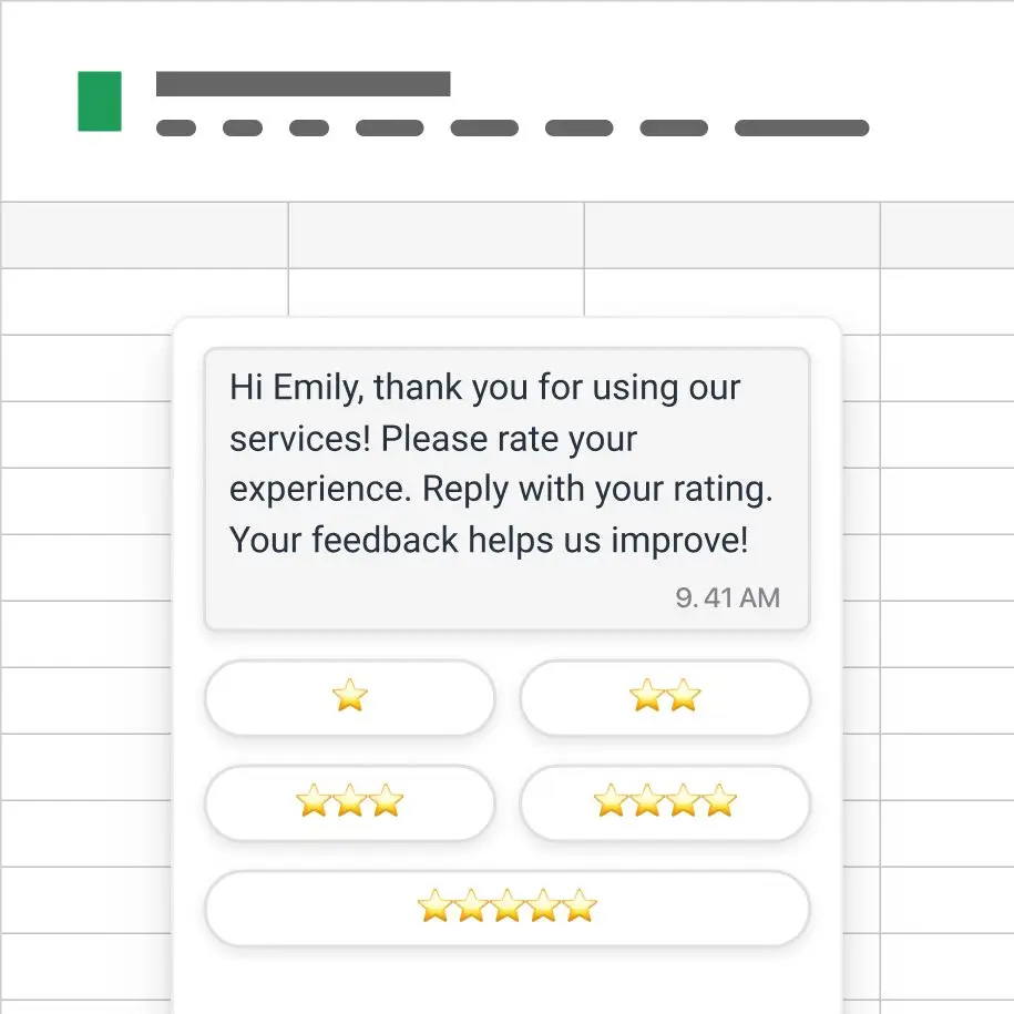 Request customer satisfaction ratings after every interaction and collect feedback automatically. Store CSAT results in Google Sheets, your CRM or data warehouse to make data-driven improvements.